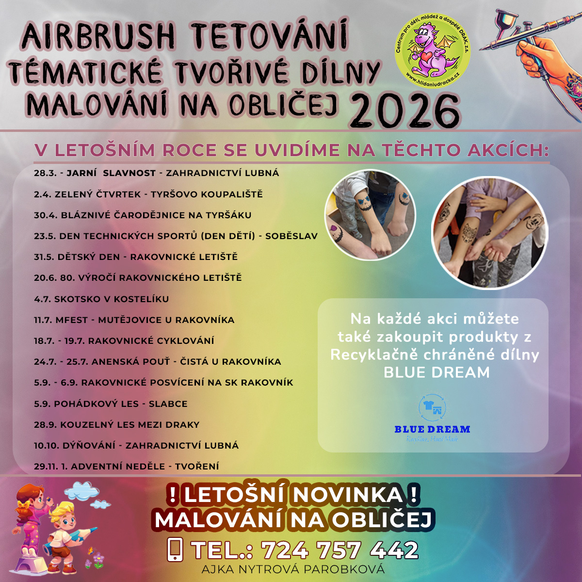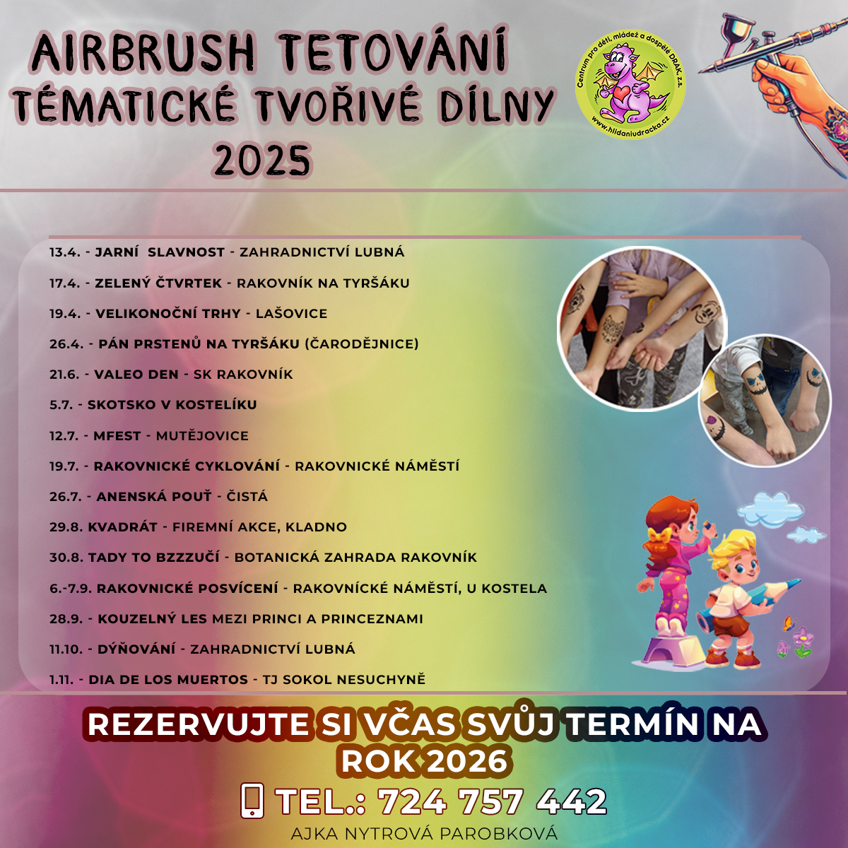 Airbrush tetování a tvořivé dílny pro vaše akce!